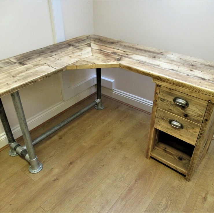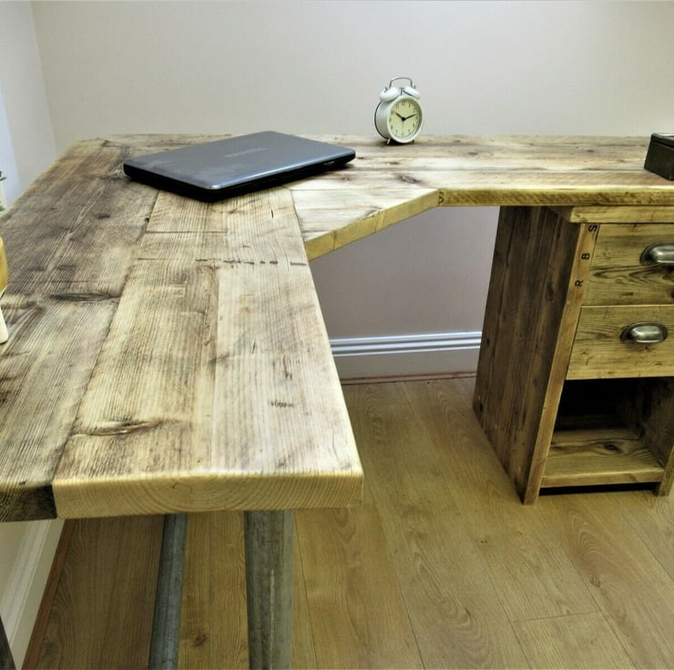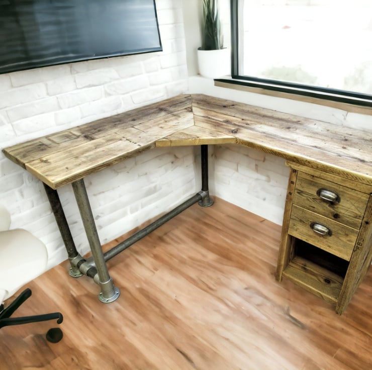 Rustic Desk Corner Two board Mitre Desk with under desk Cupboard, Storage Unit T