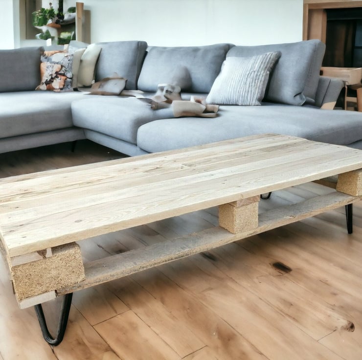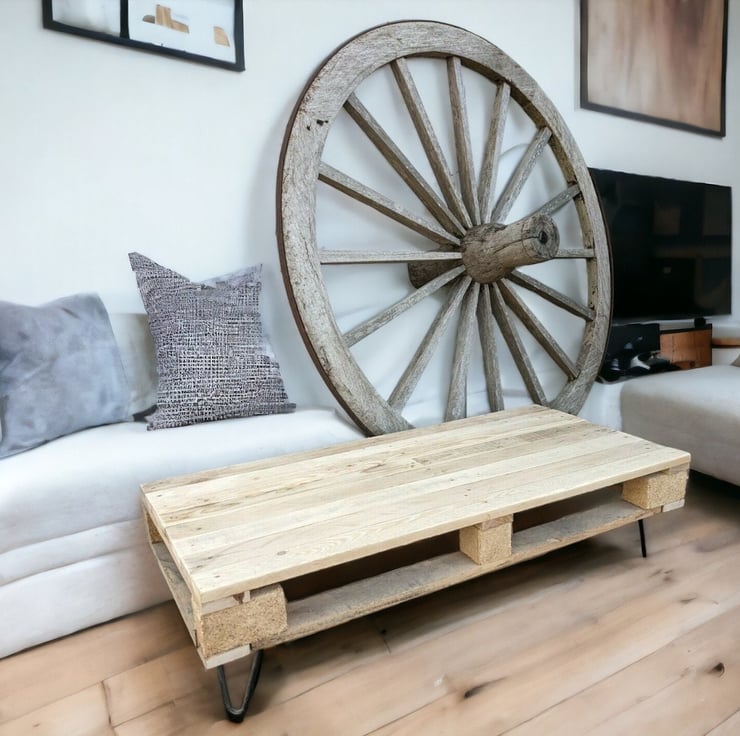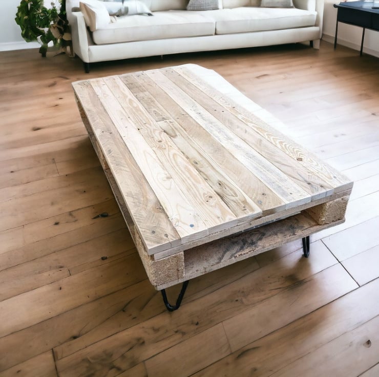 Add some rustic charm to your room with this reclaimed pallet coffee table. For a different selection on legs or dimensions please get in touch.