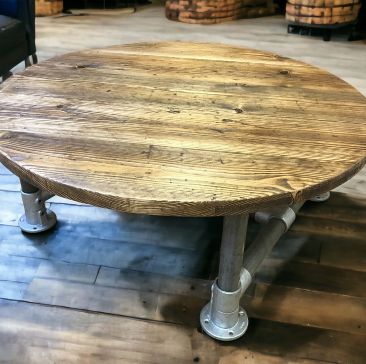 Circular Round Coffee Table, Custom Made Reclaimed Scaffold - Tube Pipe Legs THE