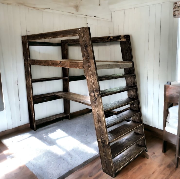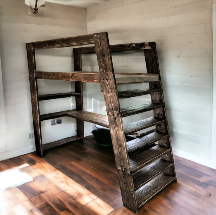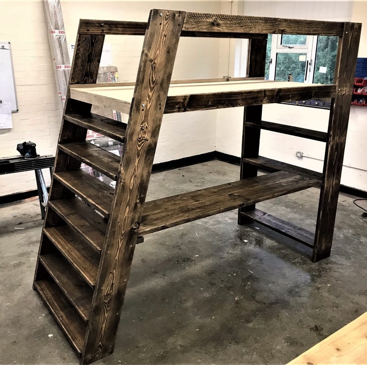 Bespoke Bunk Bed & Desk - Reclaimed Scaffold Board Wood, Sustainably Made THE FR