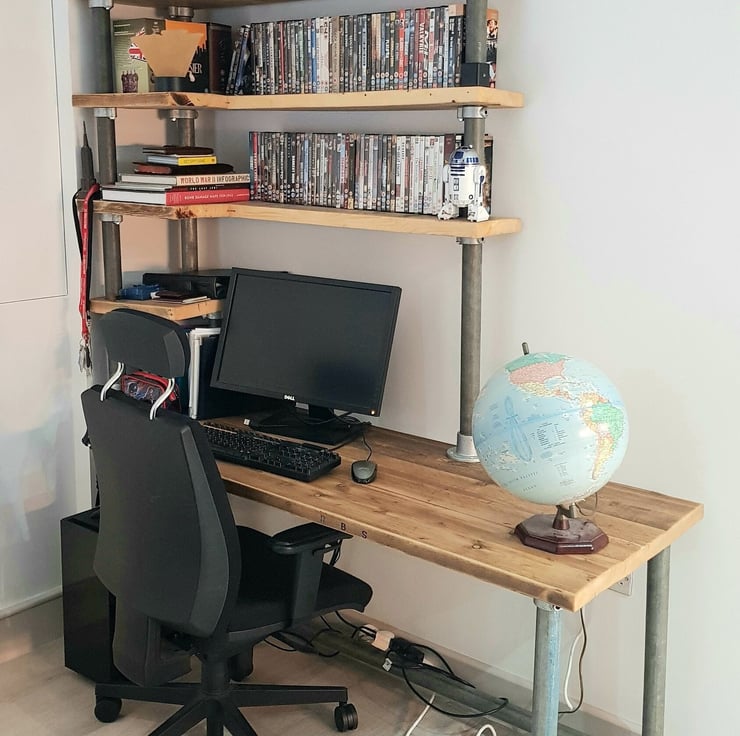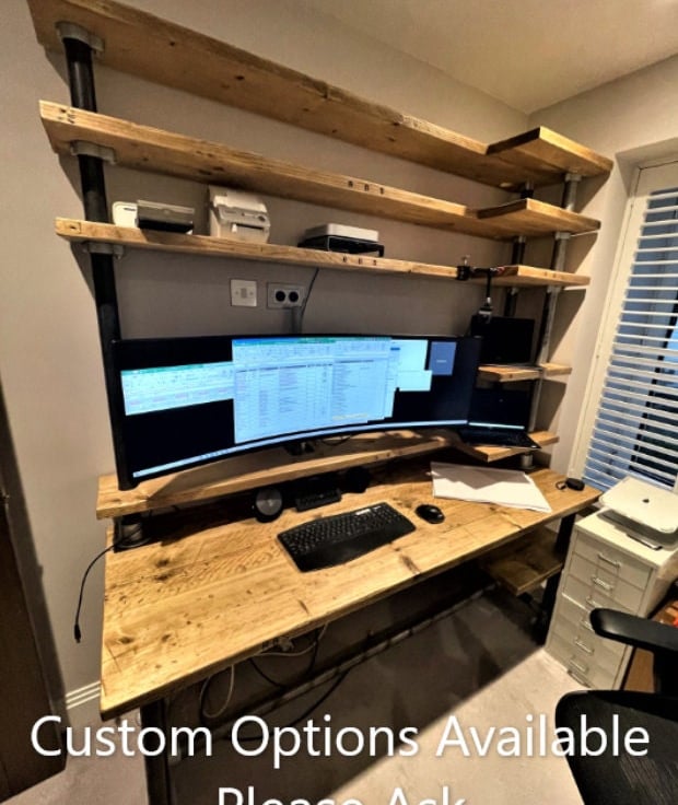 Integrated Office Desk Shelves, Custom Made,Reclaimed Scaffold Boards Pipes, Tub