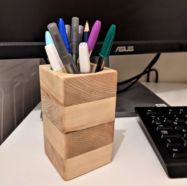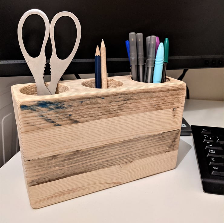 Rustic Wooden Desk Tidy Recycled Pen Pot Reclaimed Scaffold Pencil Holder THE OX