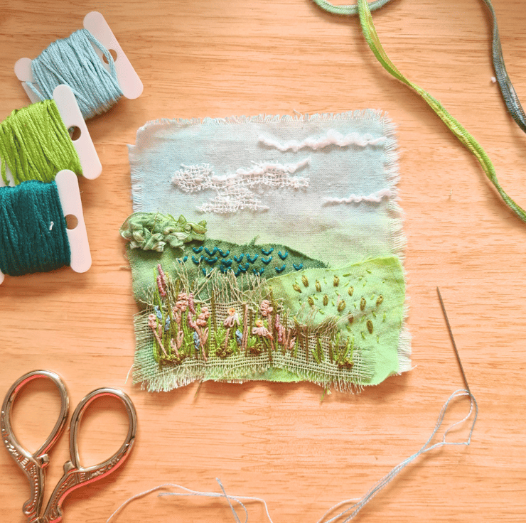 - Learn slow stitching techniques to create soft, textured embroidery.