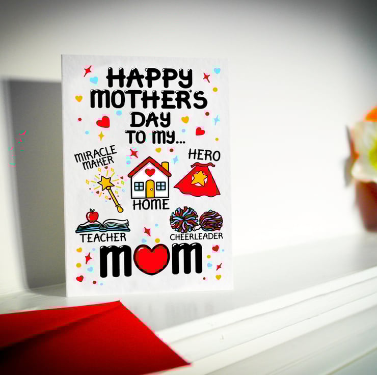 Greeting on front: HAPPY MOTHER'S DAY TO MY ... MIRACLE MAKER HERO TEACHER HOME CHEERLEADER MUM