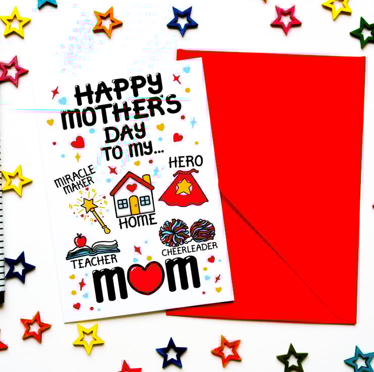 Show your mum how much she means to you this Mother's Day with our beautifully designed ‘My Everything’ Mother’s Day Card. Featuring a heartfelt and fun design, this card highlights all the incredible roles a mum plays—miracle maker, hero, teacher, home, and cheerleader.
