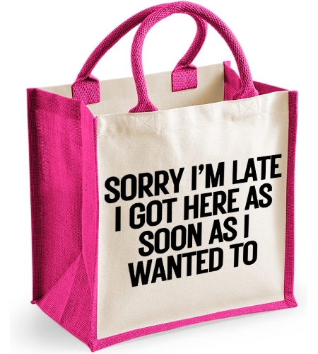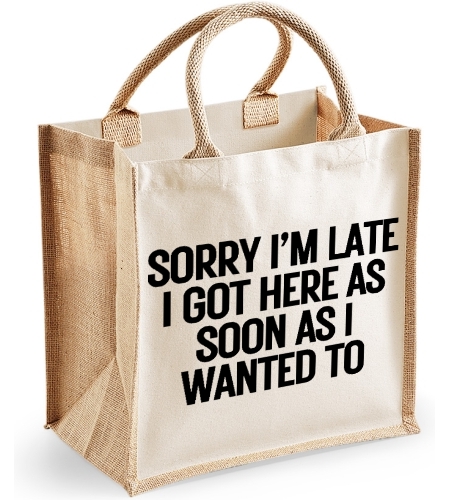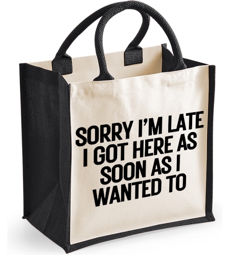Sorry im Late I Came As Soon As I Wanted Too Funny Midi Jute Canvas Bag