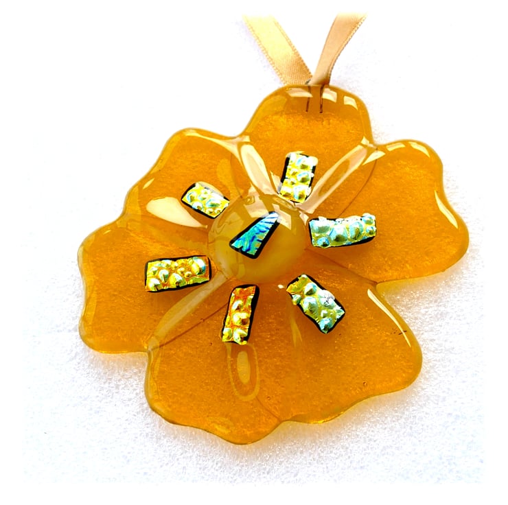 Poppy Decoration Fused Glass Suncatcher Yellow or Red