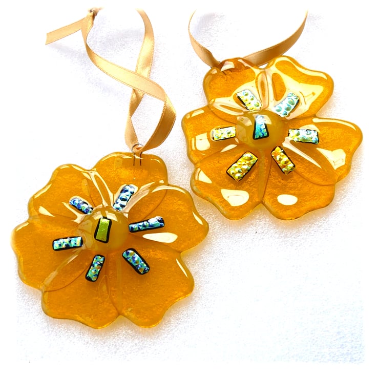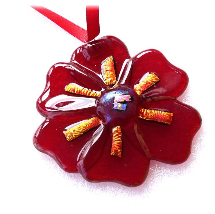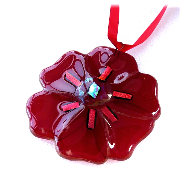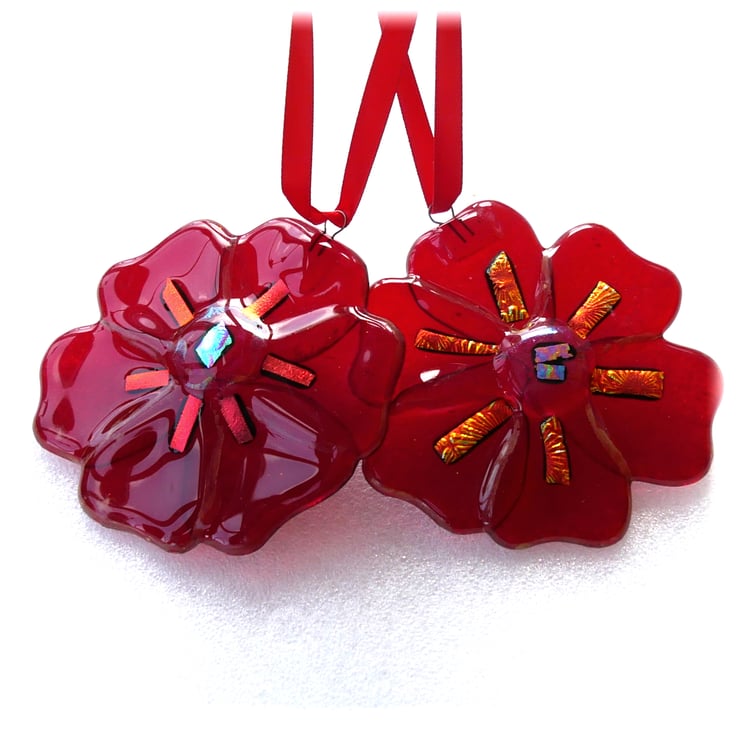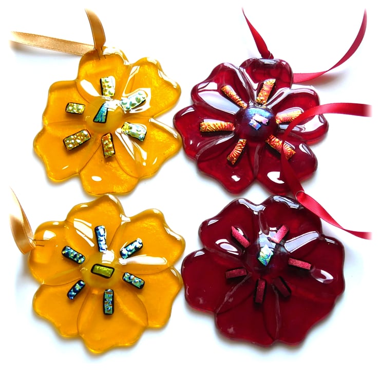 Bright red or yellow poppies, fused Glass Lightcatcher decorations.