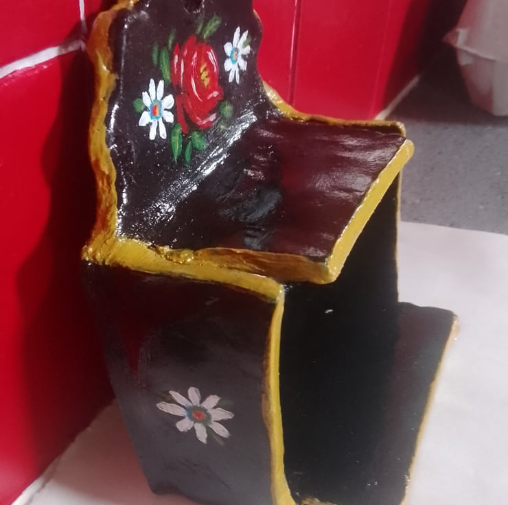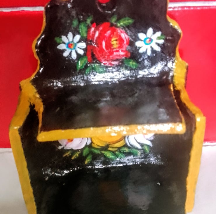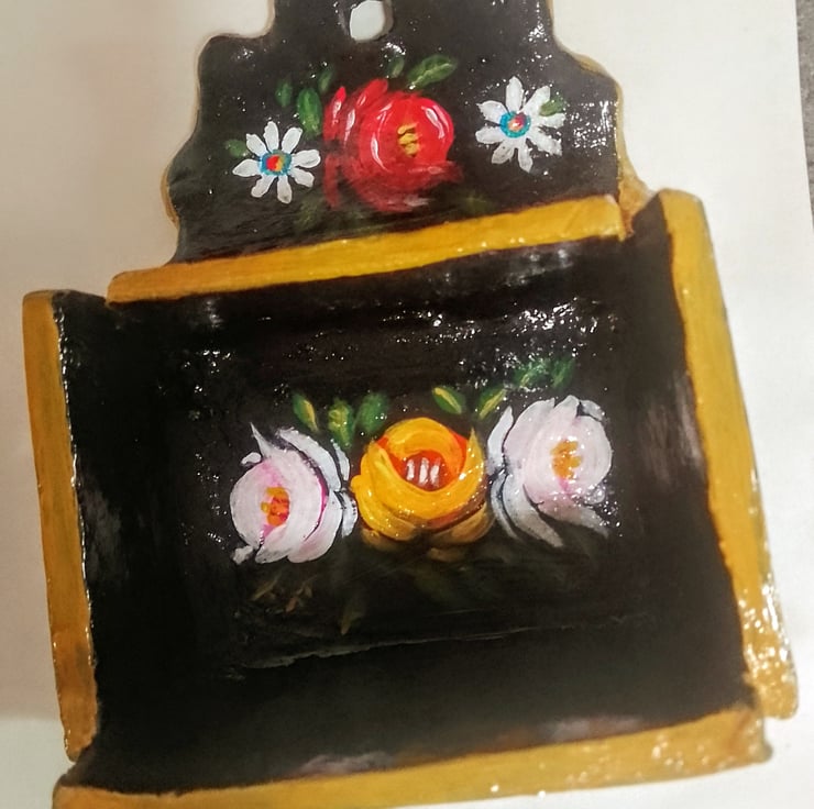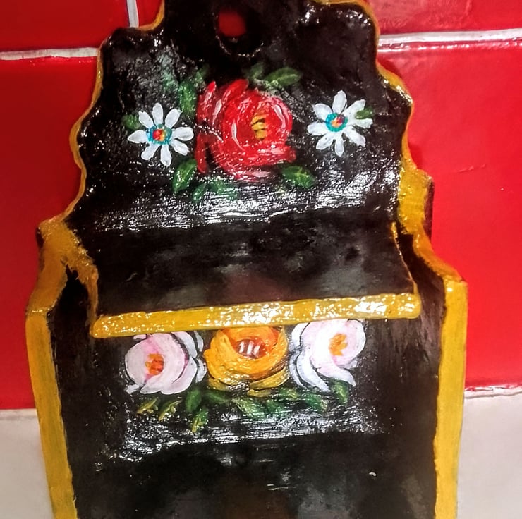 An adorable hand painted miniature wall shelf inspired by the beautiful traditional folk art of the British waterways.