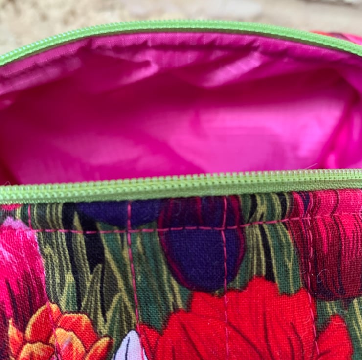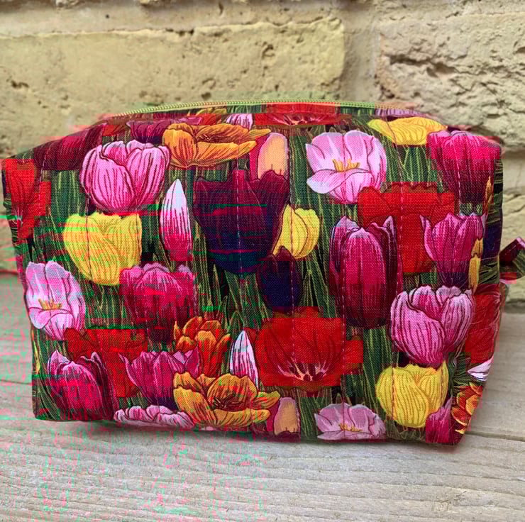 This box shape makeup bag is made in this gorgeous tulip print cotton fabric.