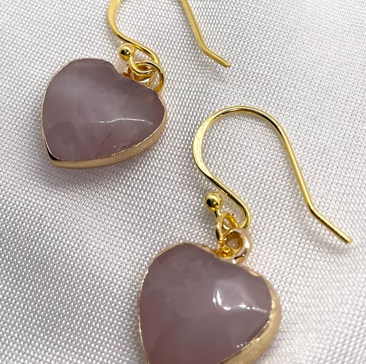 Romantic rose quartz heart shaped earrings combined with gold vermeil earring hooks.