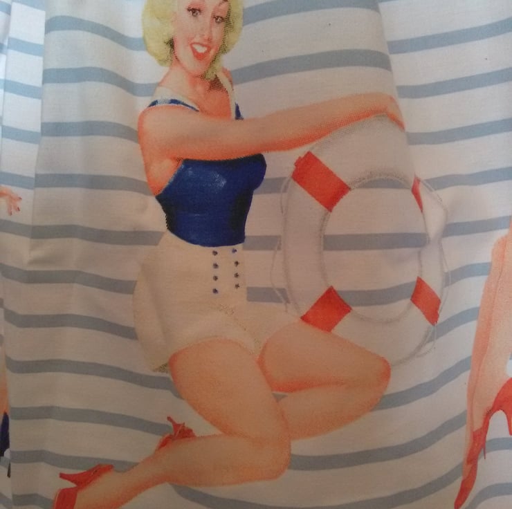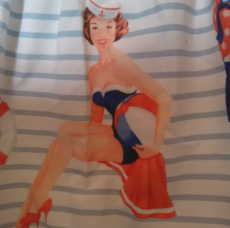 Beach pinup themed fabric upcycled from a duvet cover