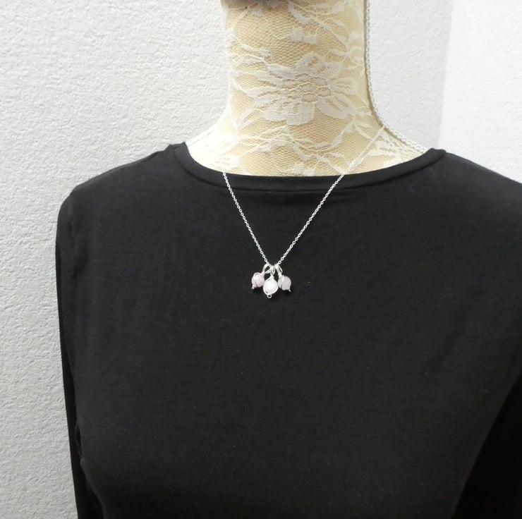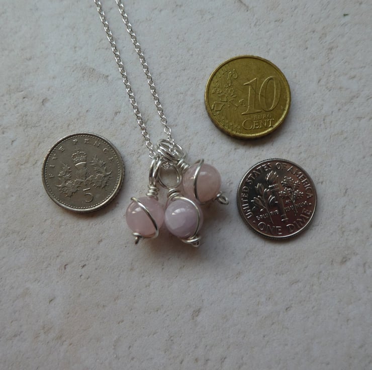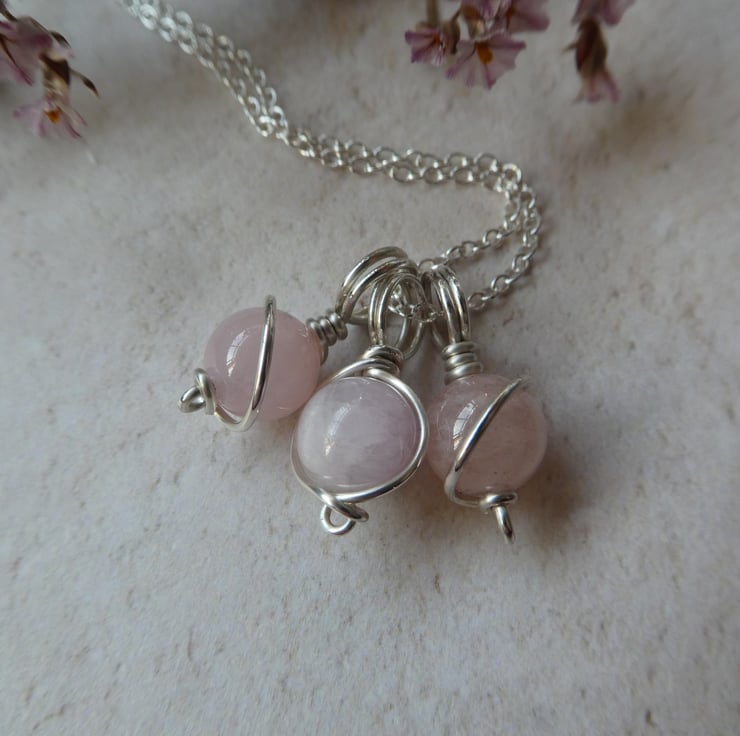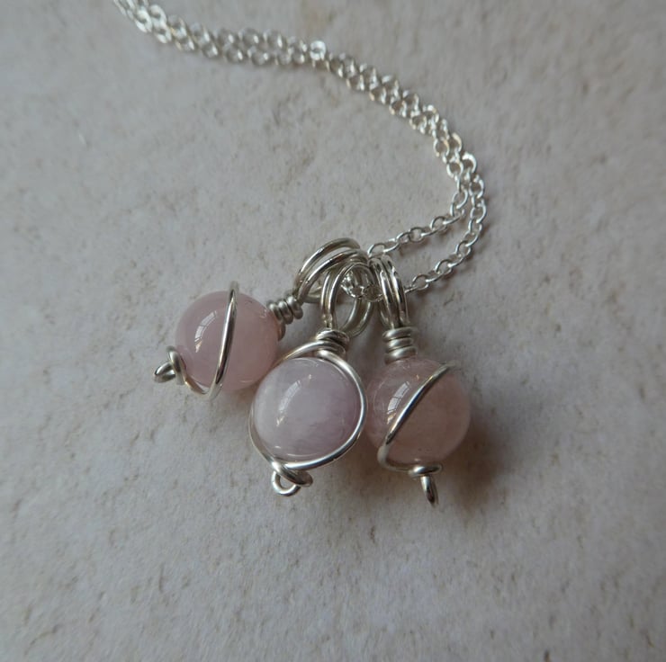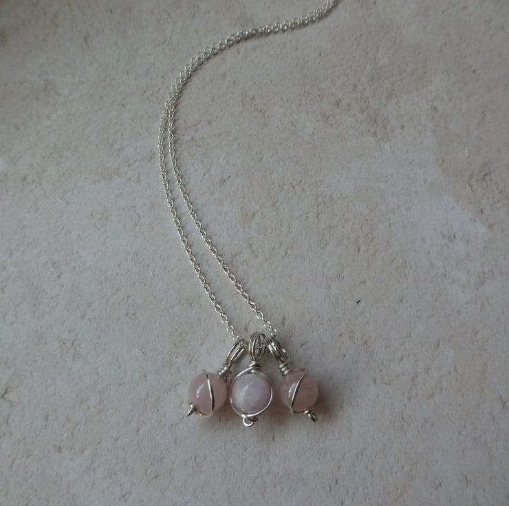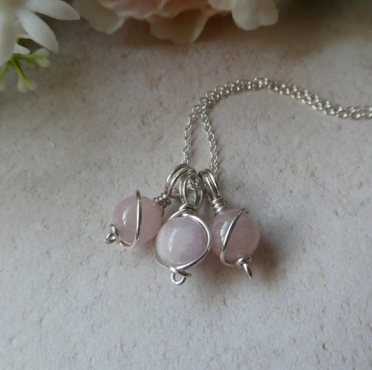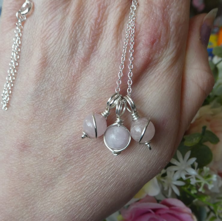 This pretty necklace features three individual gemstone charms on a sterling silver chain. I have chosen harmonious shades of pale pink gemstones to create a soft, subtle blush colour palette which is feminine and delicate. The beads used are 8 mm in size which are great for everyday wear being neither too big nor too discreet. As well as sitting together in a harmonious group, these charms can also be worn individually for a more minimalist look.