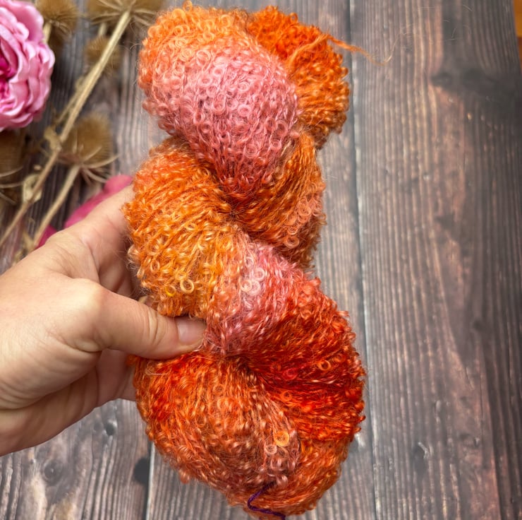 This angora mohair loopy boucle is perfect for any project and adds a touch of luxury to your creations. With its high-quality material and beautiful colours, you can make anything from scarfs and blankets to decorative items. This yarn is ideal for knitting weaving doll making and felting textile projects