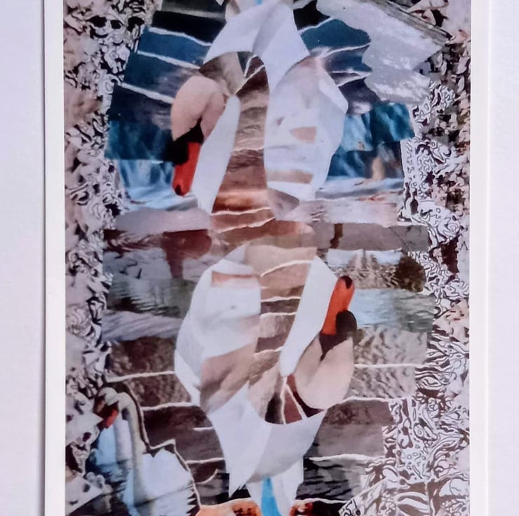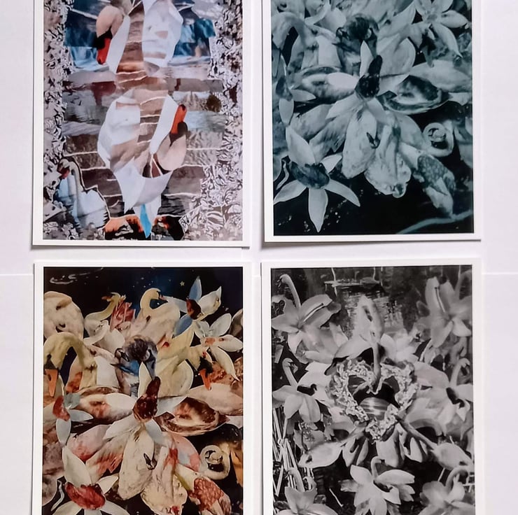 Inspired from photographs I took for over 3 years of my local swan, which I used for hand cut collages. The cards are A5 prints of these collages.