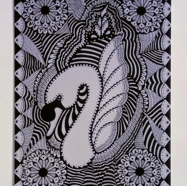 Original print of hand drawn swan I made on quality gloss card, size A5. Flat card left blank for own message, sold with envelope in cellophane packaging.