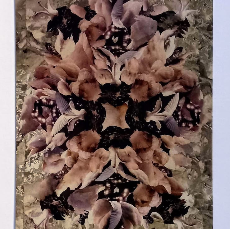 Original print of collage I made on quality gloss card, size A5. Flat card left blank for own message, sold with envelope in cellophane packaging.