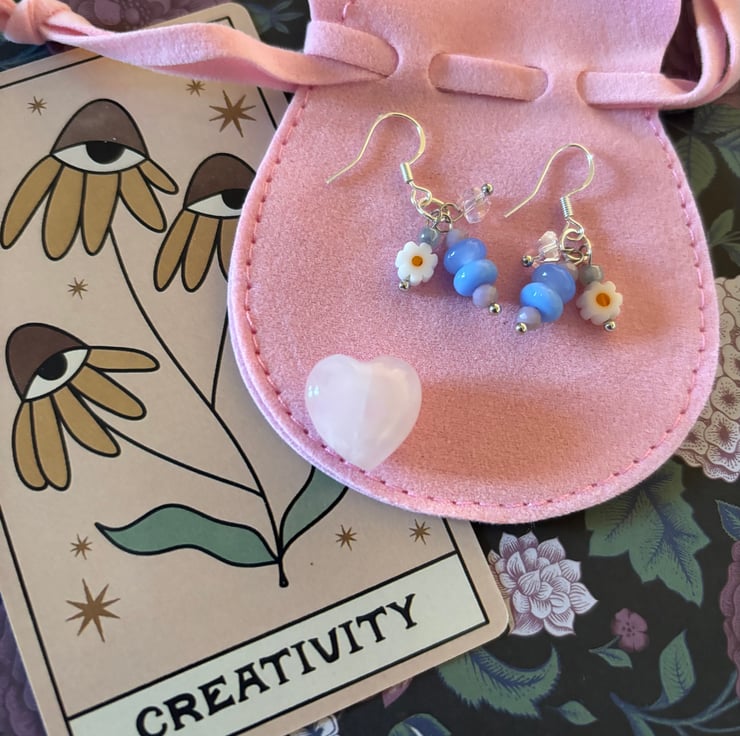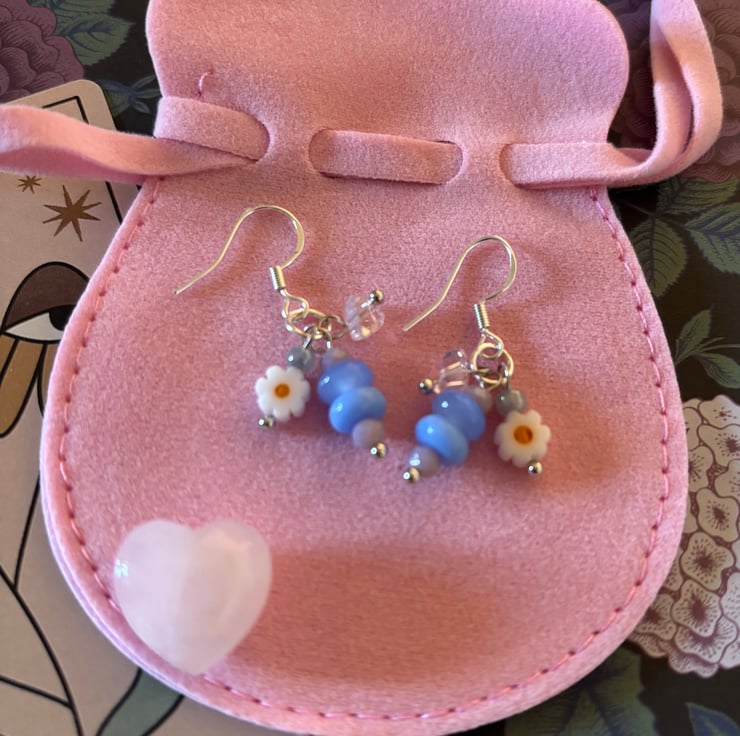 Pretty spring/summer earrings with mini daisy’s and pale blue beads.