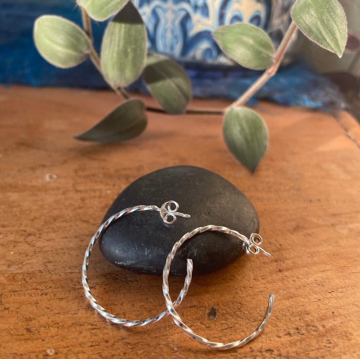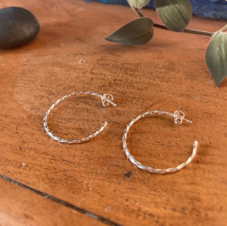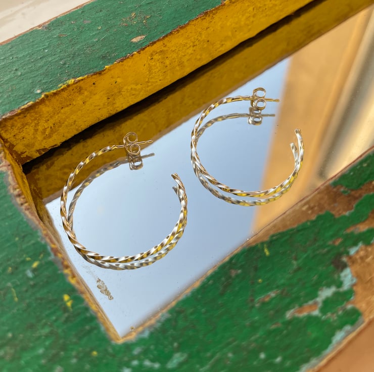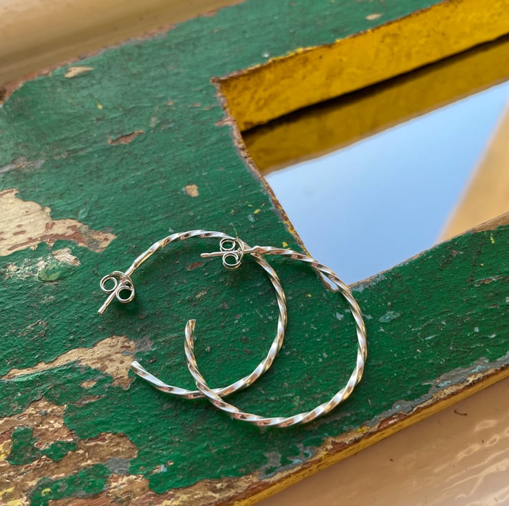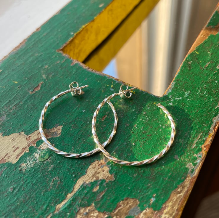 These are made from square wire which have been hand twisted and formed in to a medium sized hoop.