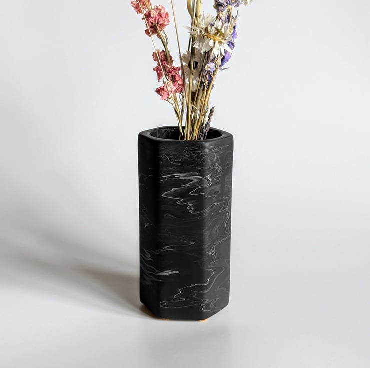 Designed with clean geometric lines, this vase is perfect for showcasing both dried and fresh flowers. The hand-poured marbling technique creates a stunning, intricate pattern, and it’s available in a variety of colors, making each piece unique.