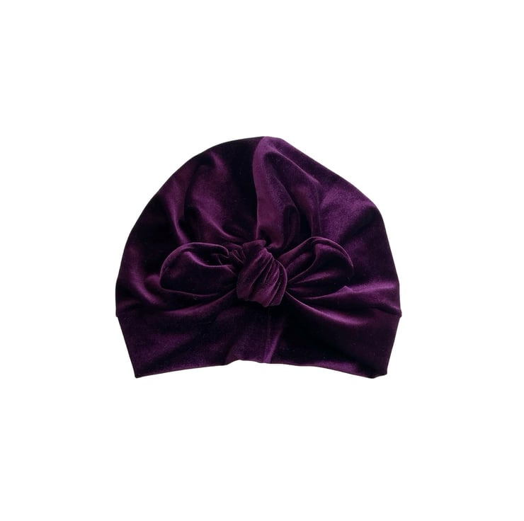 Purple Velvet Turban Hat with Bow Luxury Head Wrap Handmade Super Soft Velvet