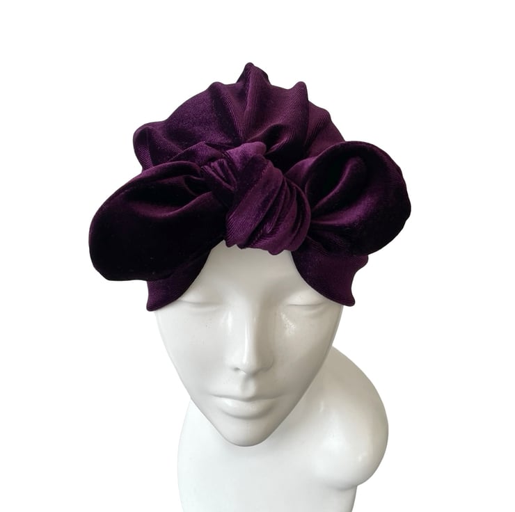 Purple velvet turban hat for women. This is a single-layer design (it is not lined) velvet hair turban.