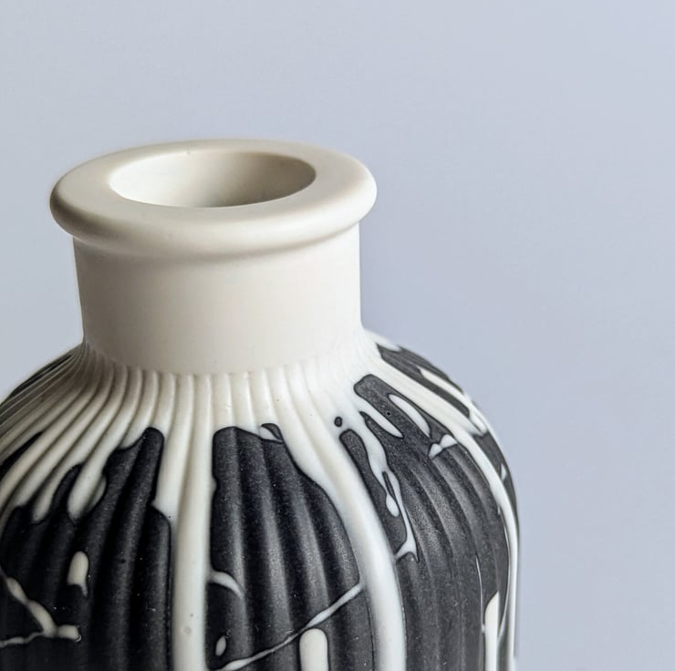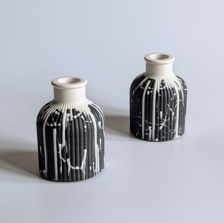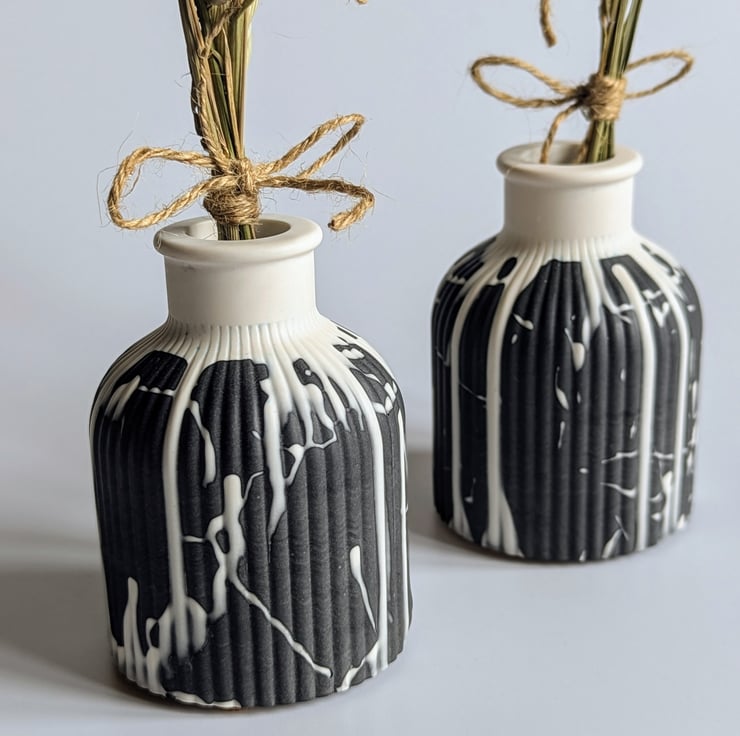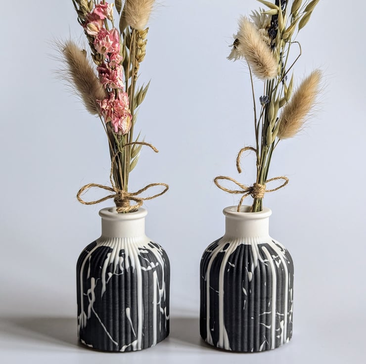 Adorned with a unique white drip and splatter pattern, these vases are the perfect way to showcase both dried and fresh flowers. Their bold design adds an artistic touch to any space.