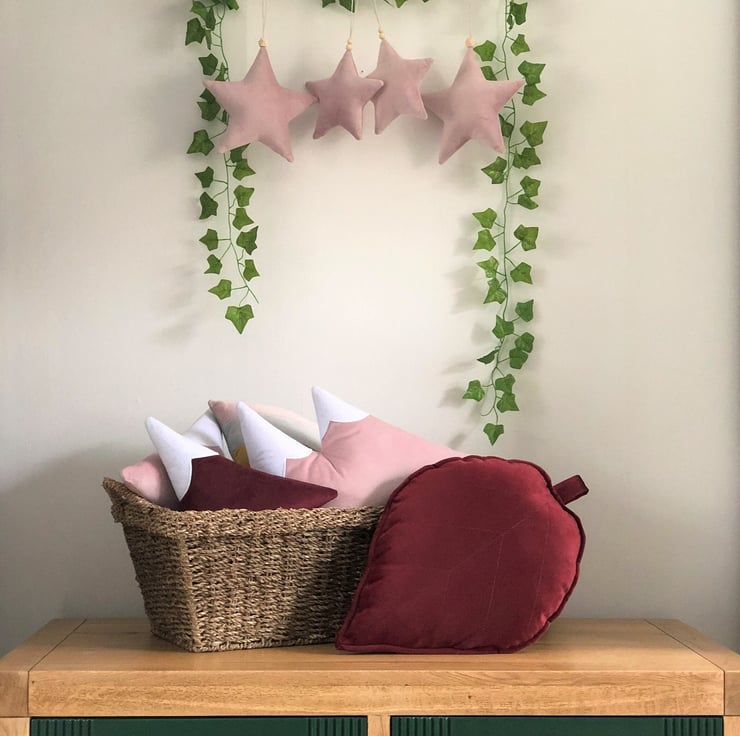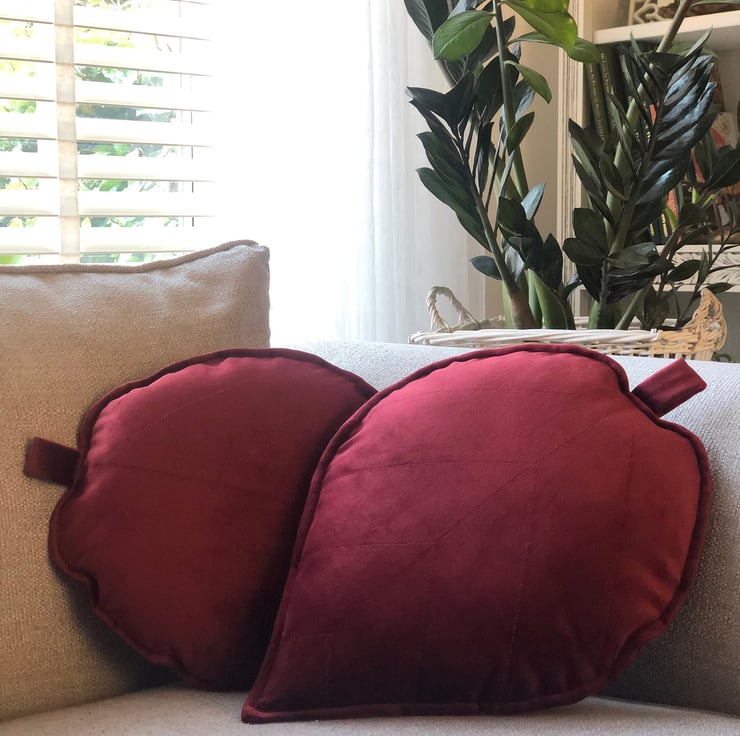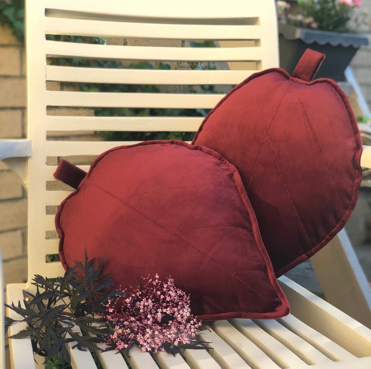 Burgundy/claret red leaf pillow - a decorative accent for your sofa or chair which adds an autumn cheer to your decor.