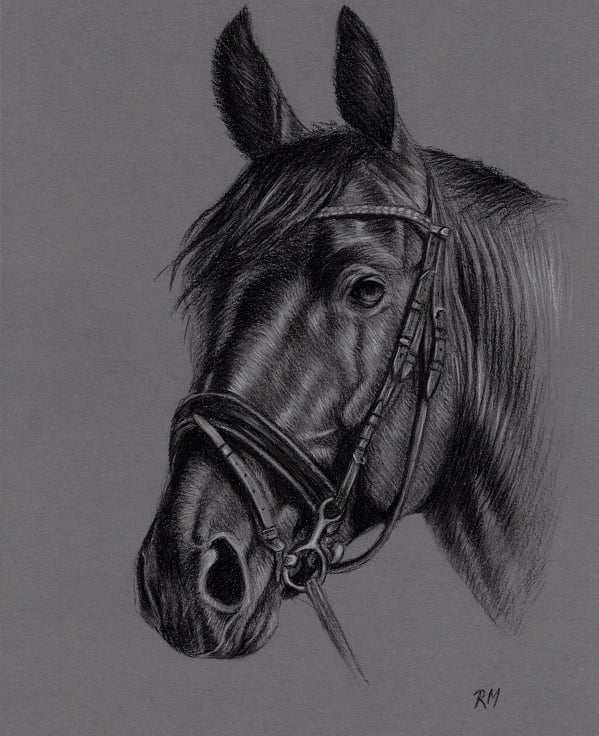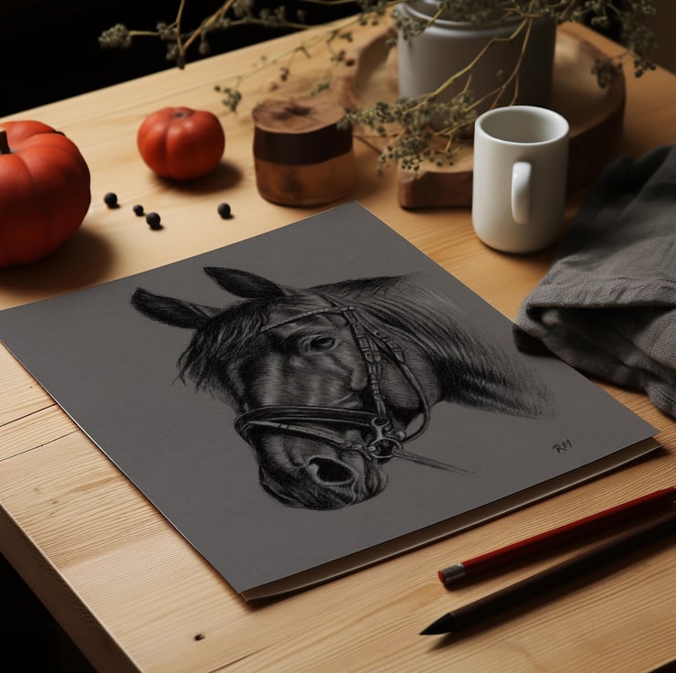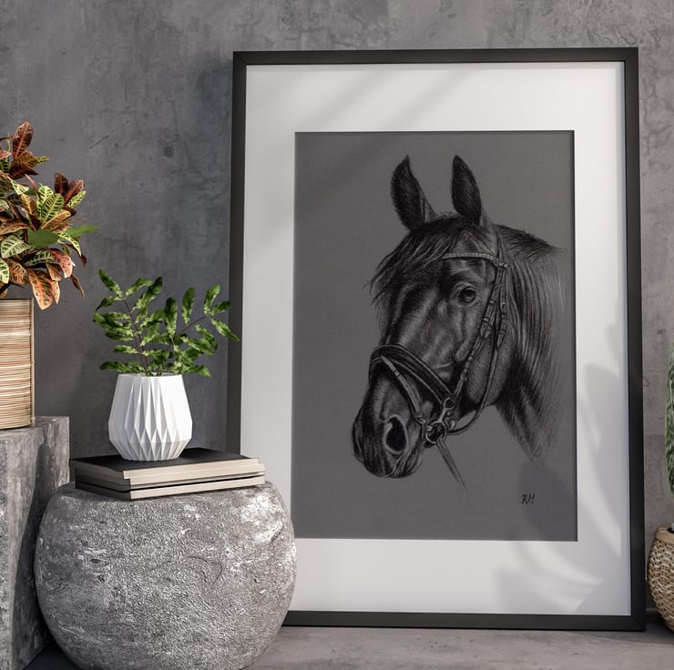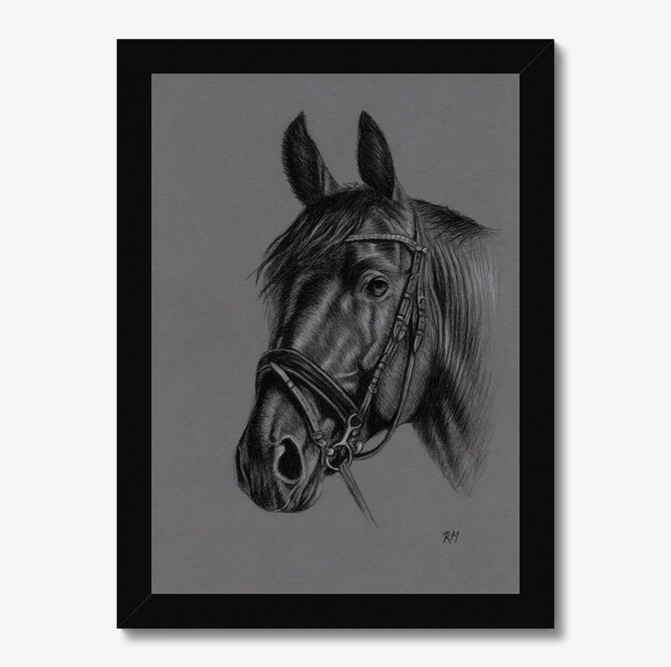An original work of art. A unique gift for any animal lover. This is a charcoal drawing of a horse on grey toned paper.