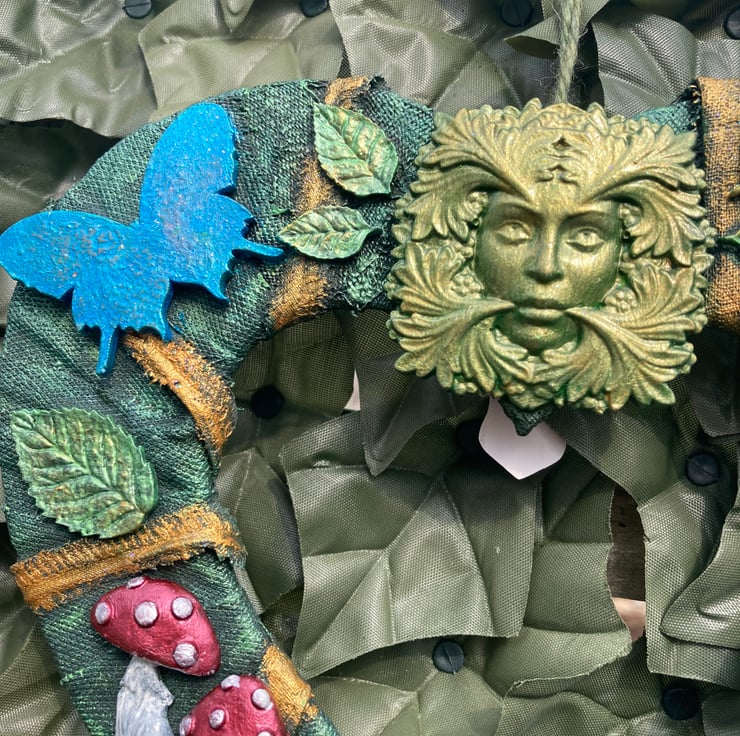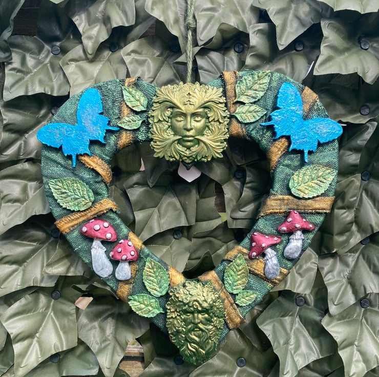 A lovely heart shaped wreath featuring both Green Man and Green Woman and woodland embellishments. This is weatherproof so you could hang it in the garden, although I would recommend protecting it from the worst of our weather.