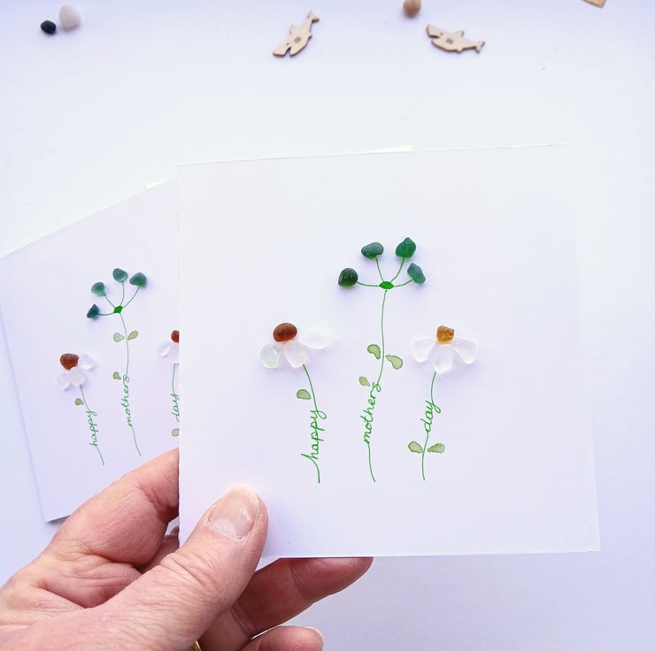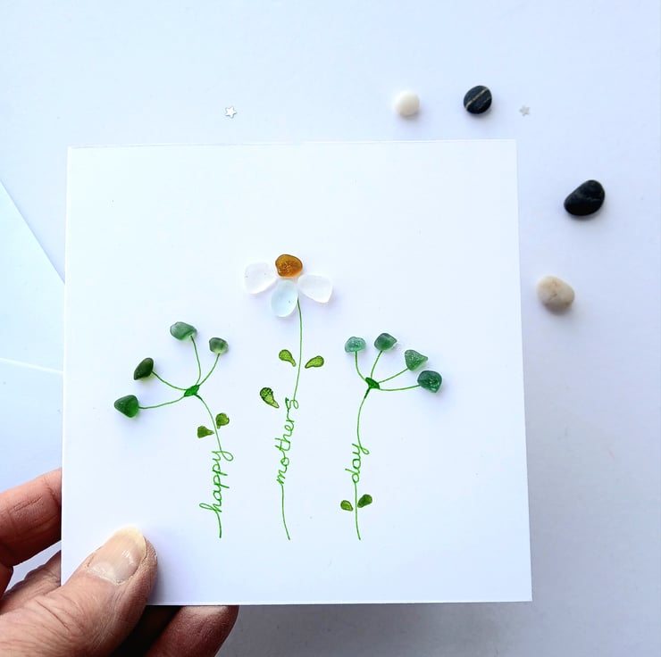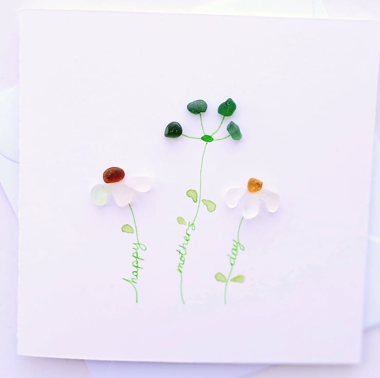 This Mother's Day card is designed and made in Staffordshire, with sea glass collected on the beaches of the North East of England.