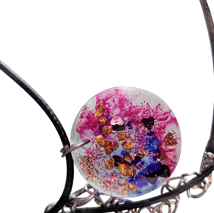 Handmade using resin and all things pretty and interesting on a faux leather chain. Perfect gift for ladies/girls if you're looking for something unique