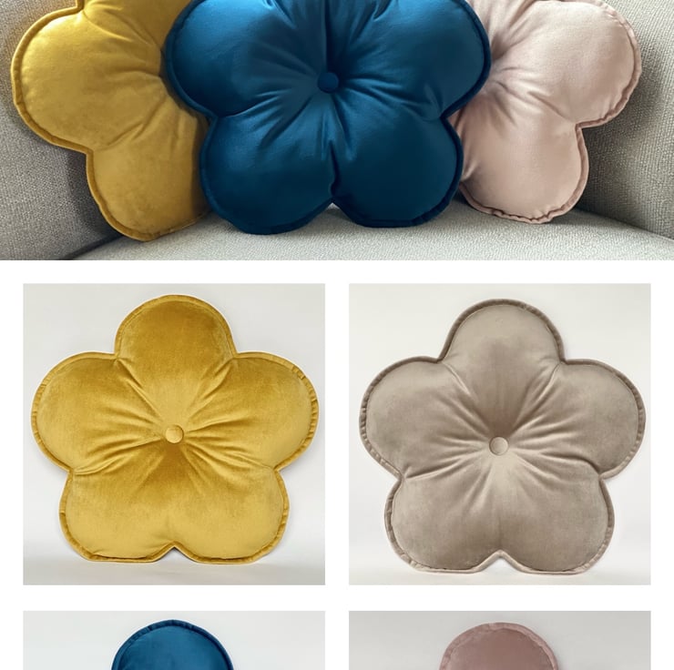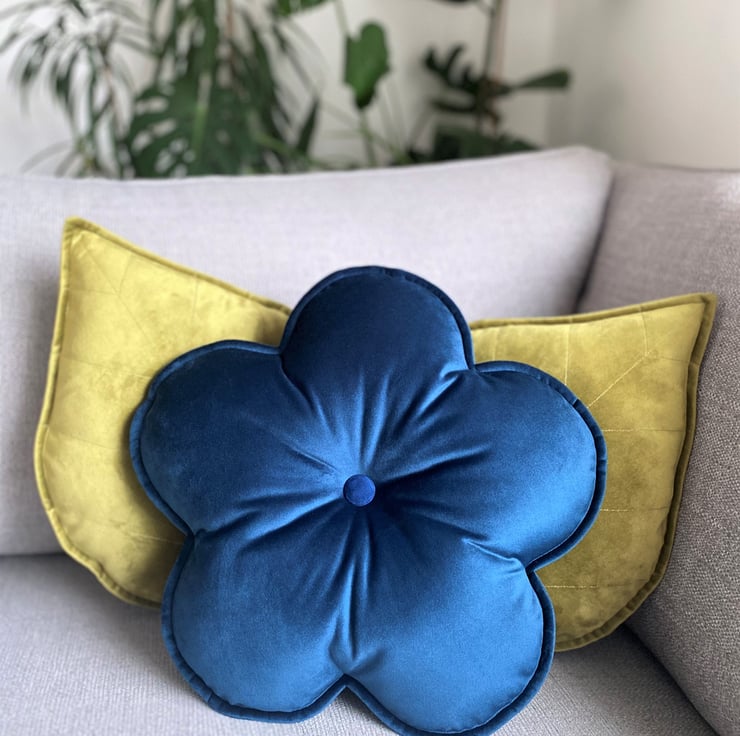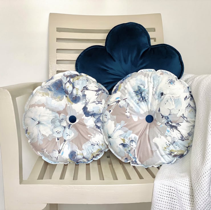 Brighten up your room with this cute navy blue flower-shaped cushion.
