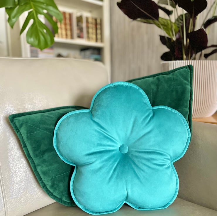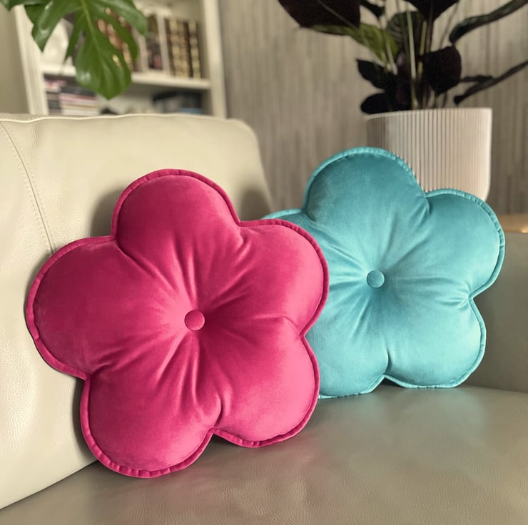 Brighten up your room with this cute turquoise blue flower-shaped cushion.