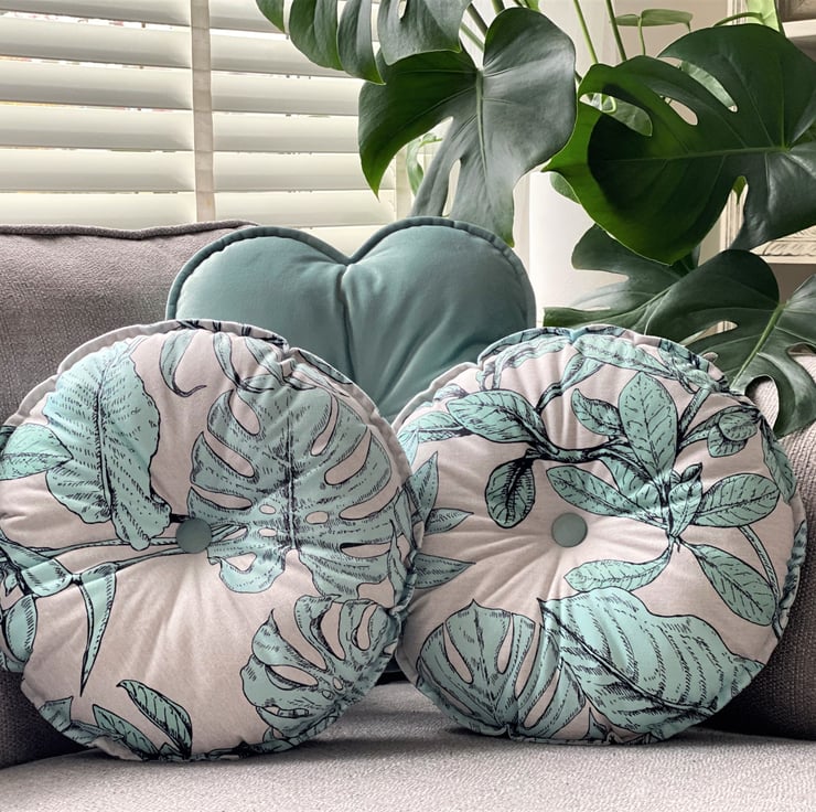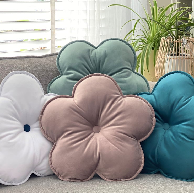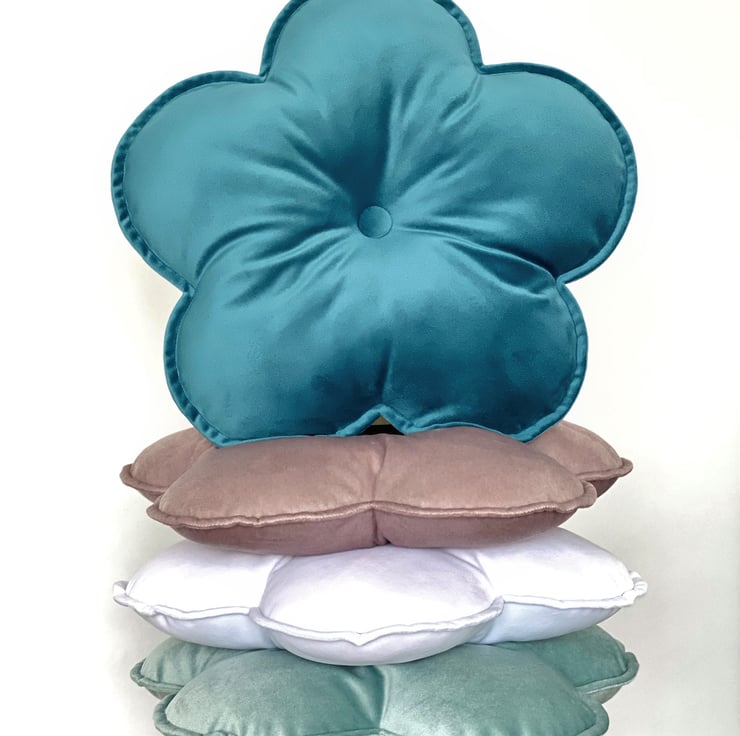 Brighten up your room with this cute duck egg green flower-shaped cushion.