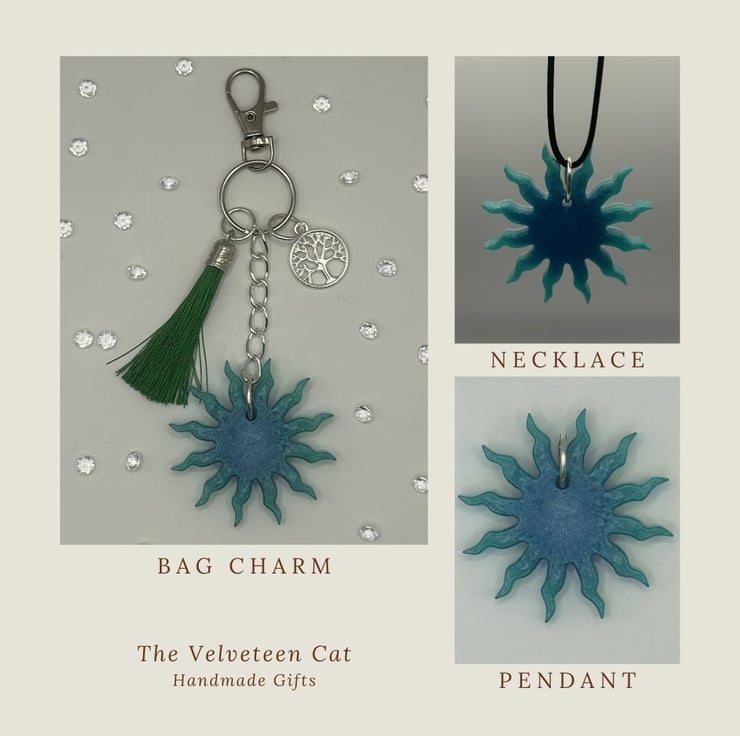 These were some of my first pieces when starting on my resin journey. I initially made them as pendants but then thought they equally suited keyrings and bag charms so hence the reason I am offering them as either type. They look lovely worn on a leather cord.