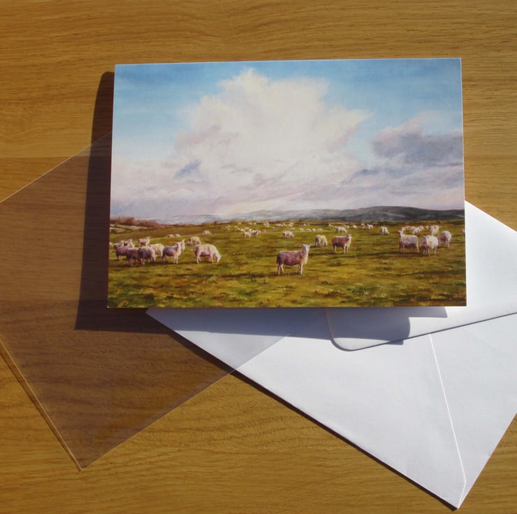 SHEEP Greeting Card - Rural Landscape Fine Art Card - Welsh Countryside Card
