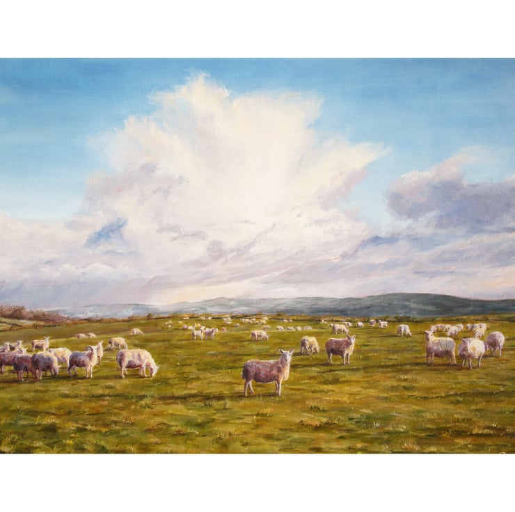 SHEEP Rural Landscape Fine Art Greeting Card by West Wales Artist, Conway Rowland.