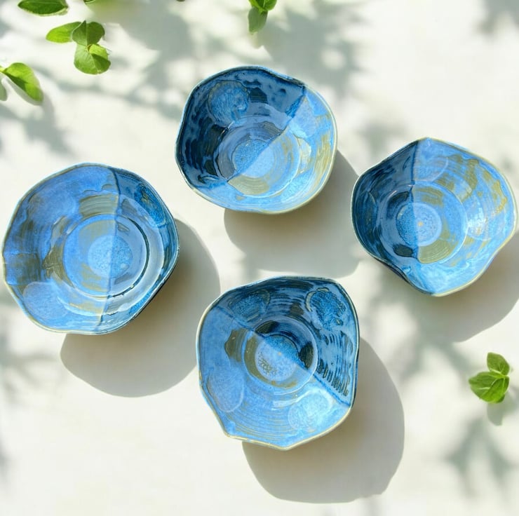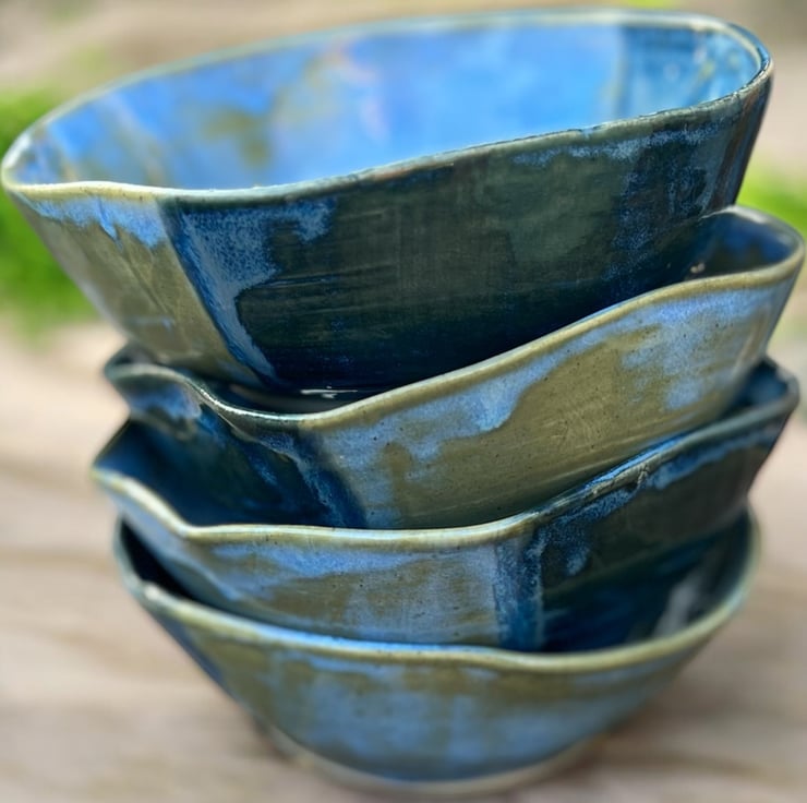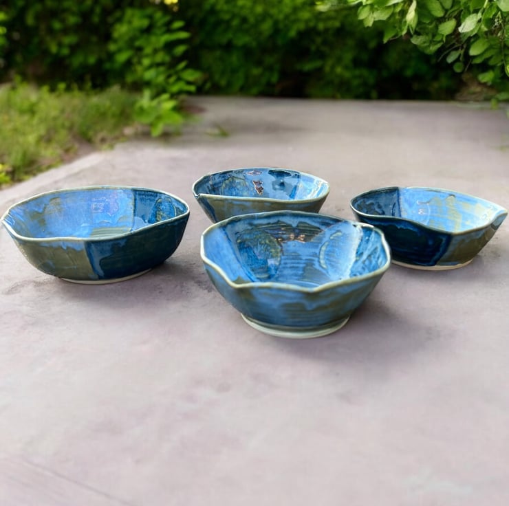Each bowl is individually crafted on the potter’s wheel, featuring a charming wibble wobble design. Double-fired for durability and finished with two stunning glazes—Floating Blue and Morning Glory—these unique bowls are perfect for snacks, trinkets, or everyday use.