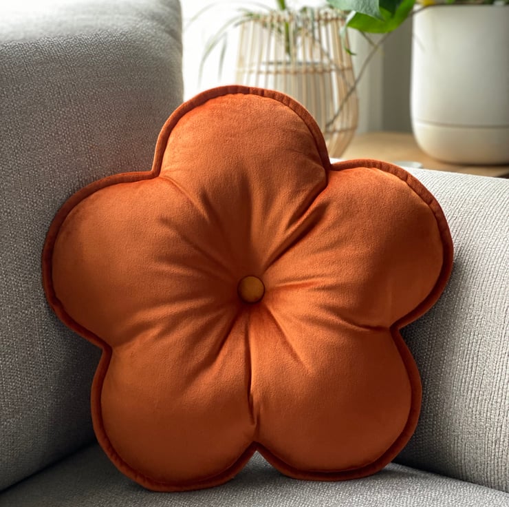 Brighten up your room with this cute rust orange flower-shaped cushion.
