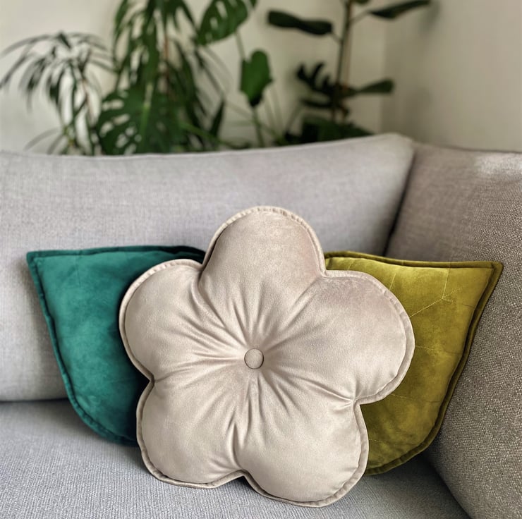 Brighten up your room with this cute champagne beige flower-shaped cushion.