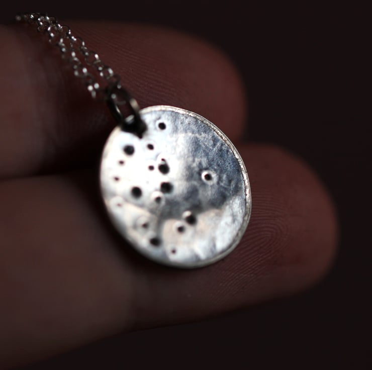 Handcrafted Sterling Silver Full Moon Necklace— inspired by the beauty of the lunar surface.