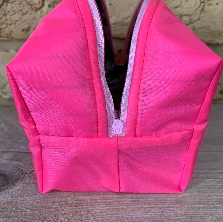 The bag is fully lined in bubblegum pink colour ripstop nylon lining and all seams are enclosed.
