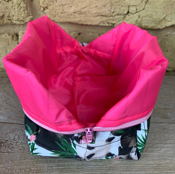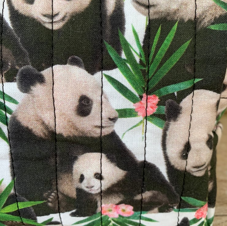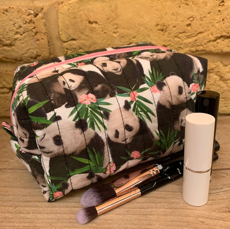 The Box Shape Makeup Bag is made in this lovely Panda cotton print.