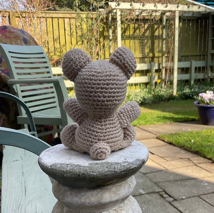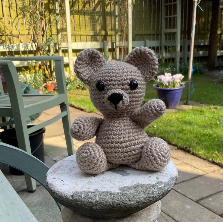 Handmade crocheted teddy bear.