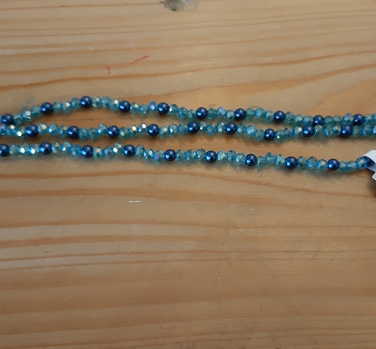 This sparkly, glass bead triple-strand bracelet is perfect for everyday wear or saved for special occasions. You could match it with an outfit that has hints of blue in it.