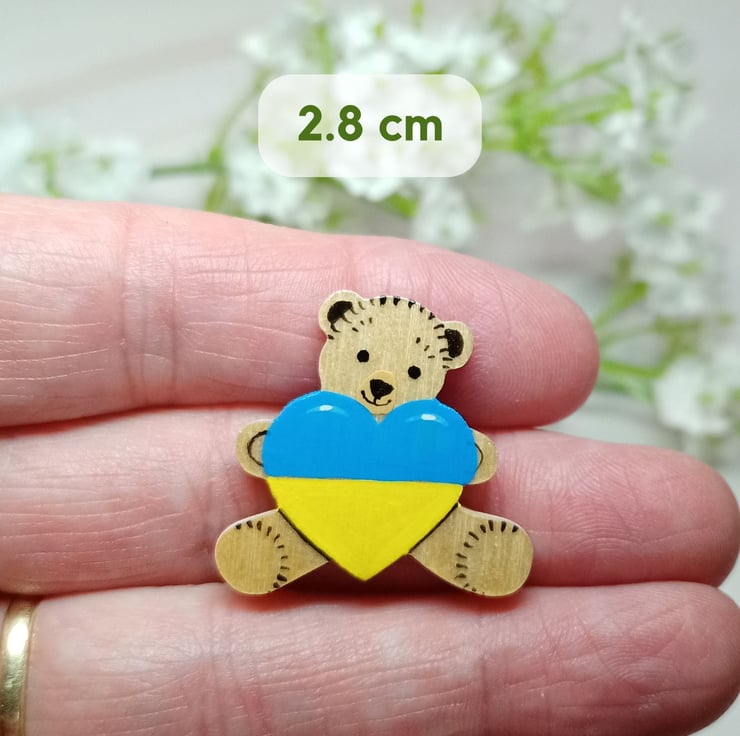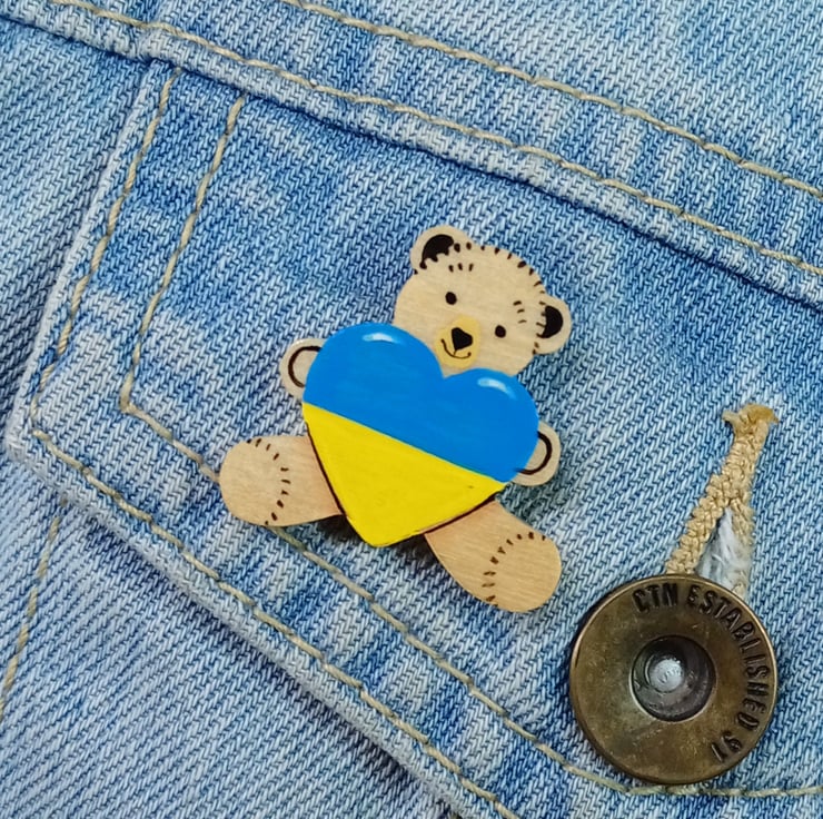 Handmade Ukraine Flag Heart Bear Pin