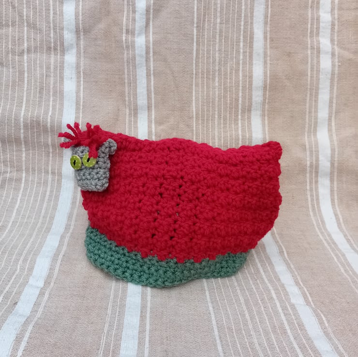 Hand-crocheted sheep tea-cosy to keep your tea hot and make you smile.