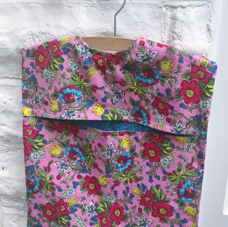 Lined Peg Bag - pink and blue floral cotton fabric.
