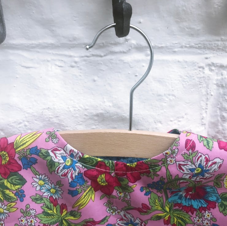 Lined Pink and Blue Floral Peg Bag with wood hanger
